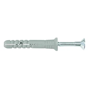 Kołek wbijany z kołnierzem o rozmiarze 10 mm x 140 mm, marki Wkręt-met. Kołek polipropylenowy z kołnierzem lejkowatym do pełnych materiałów budowlanych, takich jak beton, cegła pełna, kamień itp. Przeznaczony do wszelkich zamocowań typu lekkiego w budownictwie ogólnym i w wykończeniu wnętrz. W szczególności dla konstrukcji nośnych ścian gipsowo-kartonowych oraz w zastosowaniach wymagających dużej liczby punktów mocujących wykonanych z materiałów drewnianych. Charakterystyczny gwoździowkręt wbija się w kołek przy pomocy młotka, przyspieszając w ten sposób czas montażu.