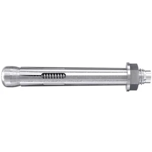 Kotwa stalowa dwurozporowa z łbem 6-kątnym 10x12mm, firmy Fischer. Pierścieniowe śruby rozporowe przeznaczone są do zamocowań statycznie obciążonych budowlanych elementów konstrukcyjnych w podłożu z betonu zwykłego, klasy nie niższej niż C20/2. CECHY I KORZYŚCI Szeroka gama rozmiarów do zastosowania przy średnich i dużych obciążeniach Zmontowana razem z podkładką i nakrętką Ochrona gwintu przed uszkodzeniem SPOSÓB MONTAŻU Nawiercić otwór Umieścić łącznik w otworze - przed instalacją umieścić nakrętkę w odpowiedniej pozycji (czop szworznia powinien wystawać 3mm ponad nakrętkę) Dokręcić nakrętkę (podczas dokręcania śruba naciska na klips rozporowy, co powoduje jego docisk do ścianek wywierconego otworu) PRZYKŁAD ZASTOSOWANIA Montaż łączników, kątowników, wieszaków belek do elementów betonowych Mocowanie drewnianych belek do ściany Mocowanie podstaw słupa do podłoża betonowego.