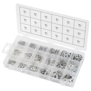 Zestaw ząbkowanych i standardowych podkładek marki KS Tools składa się z 720 sztuk o różnych rozmiarach. Podkładki te nadają się szczególnie do stosowania z korkami spustowymi oleju, śrubami banjo, a także do wielu innych zastosowań. Co więcej, ten zestaw marki KS Tools jest starannie zorganizowany w wygodnej walizce z tworzywa sztucznego. Materiał: metal Zgodnie z DIN 127 Gwint: od M3 do M10 Produkt dostarczany w plastikowym etui 720-częściowy zestaw podkładek zębatych i standardowych: