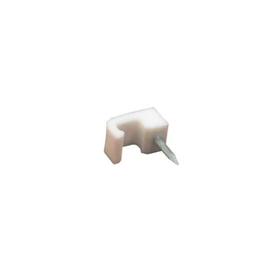 Uchwyt z gwoździem hartowanym do natynkowego montażu przewodów płaskich o maks. wymiarach 3,3x4,5 mm. Wykonany z tworzywa sztucznego. Wytrzymałość terminczna od -8 st.C do +85 st.C. Pakowany po 25 szt.