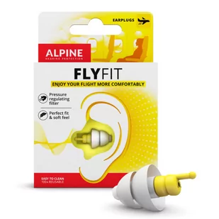 Alpine FlyFit zatyczki do uszu (para) Wielogodzinne podróże potrafią być bardzo męczące. Samo przebywanie w monotonnym hałasie, występującym na pokładzie samolotu, autobusu lub samochodu, albo głośni towarzysze mogą powodować dyskomfort. Niektóre osoby odczuwają również nieprzyjemne zmiany ciśnienia podczas startowania i lądowania samolotu, zatykają im się uszy, a nawet odczuwają ból. Firma Alpine przygotowała zatyczki do uszu FlyFit, aby podróże kojarzyły się wyłącznie z przyjemnością. Specjalny filtr akustyczny tłumi nieprzyjemny szum i hałas w samochodach, pociągach i samolotach, jednocześnie chroniąc przed zbyt dużym natężeniem dźwięku.