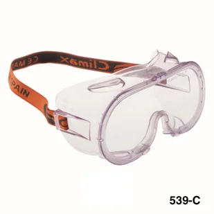 Zintegrowane goggle Climax 539 C zostały zaprojektowane, aby zapewnić skuteczną ochronę przed ryzykiem uderzenia szybkich i niskoenergetycznych cząstek, przed kroplami lub rozpryskami cieczy, grubymi cząstkami pyłu, gazami i drobnymi cząstkami pyłu. Dzięki specjalnej konstrukcji posiadają duże pole widzenia i można je używać z okularami korekcyjnymi.