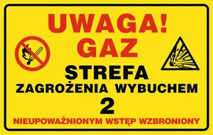 Naklejka: Uwaga! GAZ strefa zagrożenia wybuchem 2 wstęp wzbroniony 21x30cm