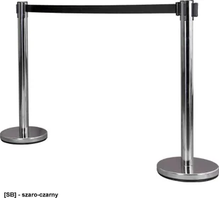 R.E.I.S. POST-STEEL-2 - słupek odgradzający, stal nierdzewna z taśmą, wysokość 90cm, średnica podstawy 32cm, waga 7kg, taśma poliester 5cm, - szaro-czarny.