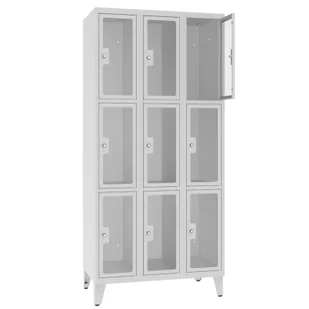 Szafka z 9 schowkami na osobne klucze - drzwiczki z pleksy MSUS 333 na nogach