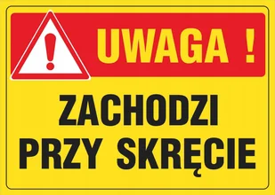 Tablica Uwaga zachodzi przy skręcie 25x35 PCV 1mm