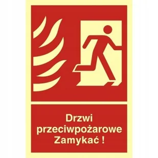 Znak - Drzwi przeciwpożarowe. Zamykać! Kierunek drogi ewakuacyjnej w prawo