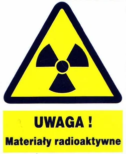 TABLICA OSTRZEGAWCZA WG PN-93/N-01256 UWAGA ! MATERIAŁY RADIOAKTYWNE rozmiar w cm 22. 5x 27. 5 tablice z mocnego PCV koloru BIAŁEGO, grafika wykonana metodą sitodruku - format znaku L w rozmiarze 225x275 - wykonany z trwałej płyty PCV