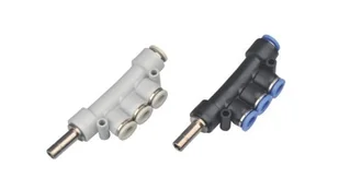 PNEUMAT SYSTEM Rozdzielacz wtykowy T wielosegmentowy fi 8mm 3x6, tworzywo sztuczne/mosiądz niklowany, 224.008-6