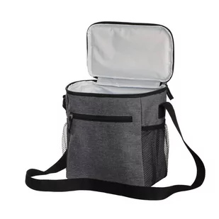 Torba termoizolacyjna, komora główna i przednia kieszeń zamykane na zamek błyskawiczny, 2 boczne kieszenie siateczkowe, rączka do noszenia oraz regulowany pasek na ramię Materiał: poliester 300D, poliester 600D