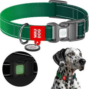 Obroża dla psa nylonowa waudog nylon mono z paszportem qr, odblaskowa, plastikowy fastex, zielona, rozmiar s, 25-35 cm, 15 mm