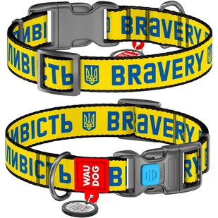 Obroża dla psa nylonowa WAUDOG Nylon z paszportem QR, rysunek "Odwaga", rozmiar L, 33-49 cm, 25 mm