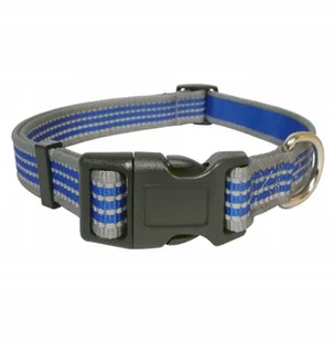 Tekstylna obroża dla psa Regulowana obroża dla psa dobra na spacery z Twoim pupilem. Zapinana na plastikową klamrę zatrzaskową, zawiera elementy odblaskowe. ...