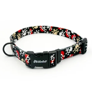 Obroża dla Psa Regulowana Piraci, 2 cm, dla mniejszych psów i szczeniaków czarne okucia-L 34-44 cm