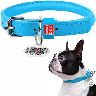Obroża dla psa WAUDOG Glamour skórzana z paszportem QR, okrągła, niebieska, rozmiar XS, 25-33 cm 8 mm