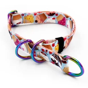 Obroża pół zaciskowa dla Psa- Hot Sweetness, szerokość 2,5 cm Jeszcze ciepła muffinka, porwana ze stołu, najlepszym sposobem na chandrę : ) Autorski projekt Psiakrew Designerska półzaciskowa, regulowana obroża z kolorowej taśmy zakładana przez głowę. Po założeniu, przypięciu smyczy i lekkim pociągnięciu obroża dopasowuje się do obwodu szyi psa. UWAGA! Przed zakupem zmierz obwód głowy psa, aby sprawdzić czy obroże przejdzie! Wykonana z gładkiej i mocnej taśmy, niepochłaniającej wody. Dodatki: holo Łatwa w utrzymaniu czystości.