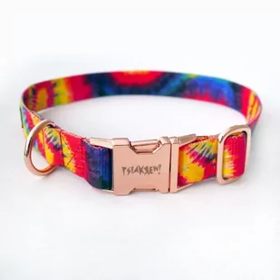 Obroża dla Psa Tie Dye szerokość 2,5 cm Pasuje do smyczy i szelek z taśmy szerokości 2,5 cm Metalowa klamra różowe złoto Przenosimy się w lata sześćdziesiąte i farbujemy ręcznie w hipisowskim stylu dla Ciebie i Twojego Psiaka. Autorski projekt Psiakrew. Designerska obroża z kolorowej taśmy; zapinana na metalowy zatrzask, klamerkę z wykończeniem różowe złoto Wykonana z gładkiej i mocnej taśmy, niepochłaniającej wody, w odróżnieniu od innych propozycji na rynku, obszytych bawełnianym materiałem. Obroża z regulacją rozmiaru do obwodu szyi psa, spawane półkółeczko do przypinania smyczy. Łatwa w utrzymaniu czystości.