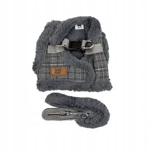 Zestaw, szelki+smycz, dla psa, szary, poliester/bawe�na, rozmiar M, ocieplane