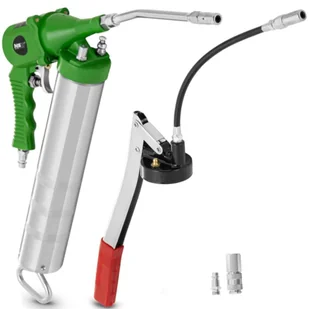W zestawie znajdziesz elastyczny wąż i stałą rurkę, każde z końcówką, za pomocą których możesz precyzyjnie dozować smar nawet w trudno dostępnych miejscach. Dlatego kompaktowej smarownicy nie powinno zabraknąć w żadnym warsztacie ani garażu. Użyj złącza 1/4", aby podłączyć urządzenie do źródła sprężonego powietrza, które zapewnia ciśnienie 6,3 barów. Daje to optymalne warunki, które wykorzystasz przy wydajności 100 l/min. Smarownica pneumatyczna sprawdza się w rozprowadzaniu smaru na zawiasach, piastach kół i łożyskach.