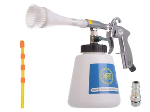 Pistolet pneumatyczny do czyszczenia tapicerek TORNADO - HCL-03 Skład zestawu: Pistolet HCL-03, Zbiornik 1 L Opakowanie, Pistolet idealnie nadaje się do czyszczenia na mokro wszelkiego rodzaju zabrudzeń tapicerek, klimatyzacji, elementów z tworzywa sztucznego, elementów lustrzanych, siedzeń, dywaników, nawiewów powietrza i innych trudnych do usunięcia zabrudzeń. Pistolet wykonany jest z metalu co daje mu odporność na uszkodzenia mechaniczne. Jego ergonomiczny kształt znakomicie uprzyjemnia i ułatwia pracę maksymalnie redukując zmęczenie ręki. Wyposażony jest w duży, litrowy zbiornik na płyn czyszczący.