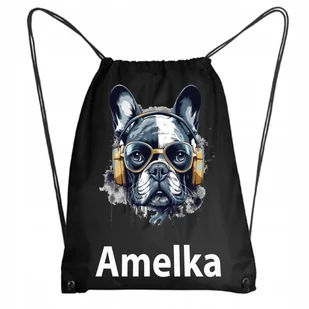 Czarny Worek Szkolny Na Buty Workoplecak Na WF BULDOG PIESEK + IMIĘ