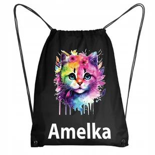 Czarny Worek Szkolny Na Buty Workoplecak Na WF Kot Kotek Akwarela + IMIĘ