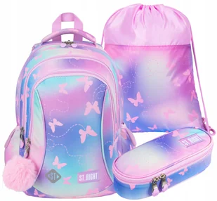 Plecak Szkolny Trzykomorowy+piórnik+worek Ombre Różowe MOTYLE-0007