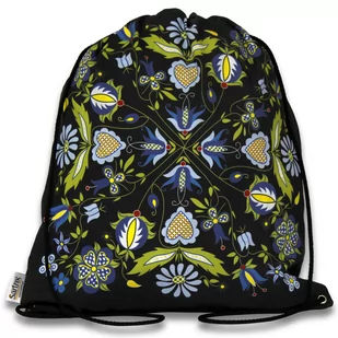 Plecak folk kaszubski serca czarny Plecak folk – z kaszubskim motywem kwiatowym oraz serduszkami. Impregnowany folkowy worek – plecak z elementami ludowego w...