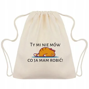 Worek Plecak Beżowy EKO Bawełniany TY MI NIE MÓW CO JA MAM ROBIĆ Zabawne Wz
