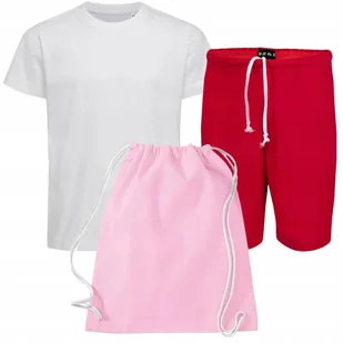 ZESTAW Koszulka Spodenki Workoplecak Czerwono-Różowy na WF - 116cm