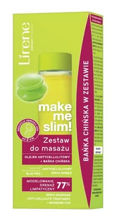 ZESTAW DO MASAŻU olejek antycellulitowy + bańka chińska Ekspertki Laboratorium Naukowego Lirene zainspirowane efektami masażu podciśnieniowego, oddziałującego na skórę i podskórną tkankę tłuszczową, wykonywanego w gabinetach kosmetycznych, stworzyły unikalny zestaw do domowego masażu antycellulitowego. Masaż przy użyciu silikonowej bańki chińskiej wpływa na zmniejszenie widoczności cellulitu, w tym wodnego, pozwala modelować sylwetkę oraz przyspiesza drenaż limfatyczny, oczyszczający organizm z toksyn. Bańka wykorzystuje metodę próżniowego zasysania skóry i znajdujących się pod nią tkanek podskórnych, co powoduje pobudzenie krążenia krwi i limfy. Wchodzący w skład olejku, przełomowy wyszczuplający kompleks Slim Pro, zawiera wyciąg z alg Tisochrysis lutea. Aktywuje on proces lipolizy (rozpad tłuszczu w tkance tłuszczowej), przekształcając nieaktywne komórki tłuszczowe (adipocyty białe) w aktywne (adipocyty beżowe), przyspieszające spalanie tłuszczu.