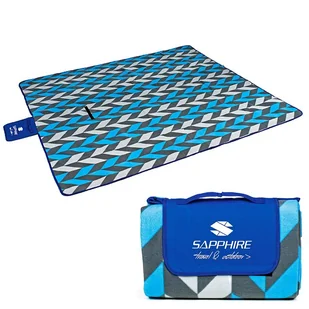 Polarowy koc z podbiciem z foli aluminiowej o wymiarach 200 x 200 cm marki Sapphire - doskonały na piknik, plażę lub rodzinny wypad na łono natury. Pełen kolorów, doskonale izoluje od podłoża.