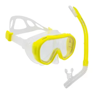 Sportmask & Snorkel Set UC-0211PFY Technologie: ClearVu Hartowane szkła, EZ System paska i kalmry, Hyperdry Semi-Dry Top Sport: Nurkowanie Atuty Zestawy do nurkowania: Szczelność, Pojedyncza szyba, Komfort użytkowania, Regulacja paska Rozmiar: S, XS