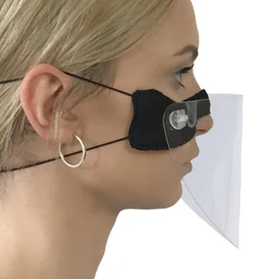 Maska ochronna mini przyłbica zakładana na nos, z miękkiej gąbki, na gumkach, z wymienną szybką, z możliwością regulacji kąta pochylenia szybki. Gumki ze sporym zapasem pozwalające na dopasowanie do dowolnej wielkości głowy. Model dodatkowo wyposażone w mechanizm regulacji gumek.