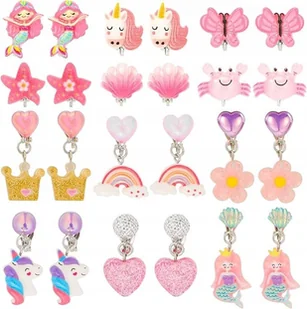 ✨ 12 PAR KOLCZYKÓW KLIPSÓW DLA DZIEWCZYNEK SYRENKA JEDNOROŻEC BEZPIECZNE ✨