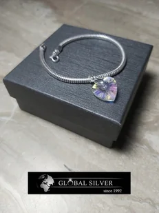 Przedmiotem sprzedaży jest modułowa, srebrna bransoleta damska wraz z charmsem z kryształowym, lekko mieniącym się sercem. Kryształ ten to HEART SWAROVSKI CR...