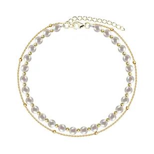 Pozłacana bransoletka wykonana z połączenia wysokiej jakości szklanych pereł oraz srebrnych elementów. Jest to idealny prezent aby upamiętnić np. Pierwszą Ko...