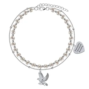 Srebrna bransoletka z Gołębiem na I Komunię Świętą. Wyjątkowe połączenie wysokiej jakości szklanych pereł oraz wyjątkowych srebrnych elementów. Jest to ideal...