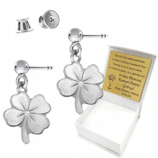 Kolczyki Dziecięce Koniczynka Kolczyki Srebrne Komunia Grawer Srebro 925