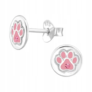 Kolczyki dziecięce ŁAPKA PSA RÓŻOWA SREBRO 925