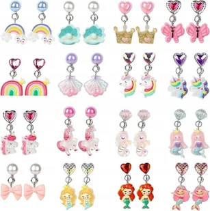 KOLCZYKI KLIPSY DLA DZIEWCZYNEK ZESTAW 16 PAR JEDNOROŻEC SYRENKA TĘCZA