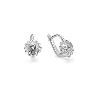 Kolczyki srebrne dla dziewczynki – kwiatuszki z białymi cyrkoniami Delikatne kolczyki w formie srebrnych kwiatuszków z błyszczącymi, białymi cyrkoniami to sy...