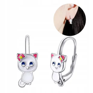 KOLCZYKI SREBRNE KOTKI DLA DZIEWCZYNKI SREBRO PRÓBA 925 ANGIELSKIE