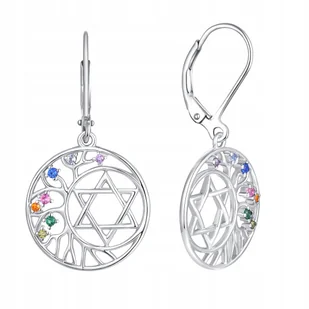 357177795 Kolczyki Srebro próby 925 Okrągłe Motyw Drzewo Życia i Gwiazda Dawida Unikalny wzór Drzewa Życia jest symbolem nieśmiertelności i uzdrowienia. Przy...