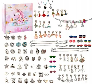 KREATYWNY ZESTAW KORALIKI DO ROBIENIA BRANSOLETEK DUŻY CHARMS DIY PREZENT AŻ 129 ELEMENTÓW! ✨Wyjątkowy zestaw zapakowany w piękne i kolorowe pudełeczko - pro...