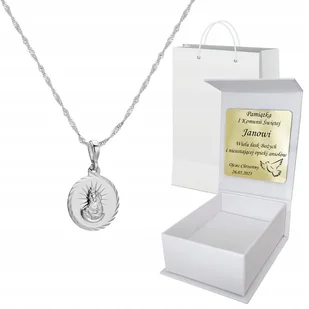 Medalik Łańcuszek srebrny Chrzest Komunia Grawer