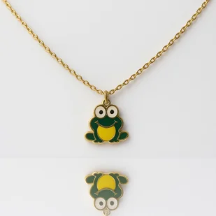 Froggy to naszyjnik, który błyskawicznie skradnie serce każdej dziewczynki. Zawieszka w kształcie wesołej, kolorowej żabki wykonana jest z trwałej emalii, dzięki czemu zachowuje swoje barwy nawet przy intensywnym noszeniu. Łańcuszek wykonano ze stali chirurgicznej 316L – materiału odpornego na uszkodzenia, wodę i codzienną aktywność dziecka. Całkowita długość naszyjnika to 40 cm z dodatkowymi 3,5 cm przedłużki, co pozwala idealnie dopasować go do wieku i wzrostu. Dzięki radosnej kolorystyce – zieleni i żółci – naszyjnik przyciąga wzrok i sprawia, że stylizacja staje się zabawna i wyjątkowa.