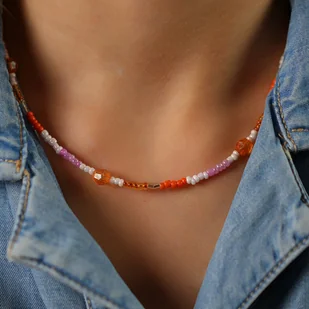 Naszyjnik dla dziewczynki Happy to radosne połączenie delikatności i kolorów. Wykonany z najwyższej jakości srebra oraz koralików w soczystych odcieniach pomarańczy, różu i bieli, emanuje energią i urokiem dziecięcej radości. Ten wyjątkowy naszyjnik dodaje blasku każdej stylizacji, podkreślając indywidualność i radosny charakter noszącej go dziewczynki. Niech Happy stanie się ulubionym akcentem w garderobie Twojej małej księżniczki, dodając jej uroku i radości każdego dnia. Specyfikacja: