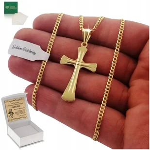 ➡️ ZŁOTY NASZYJNIK NA KOMUNIĘ CHRZEST ŁAŃCUSZEK KRZYŻYK DLA CHŁOPCA + GRAWER Produkt najwyższej jakości ⭐⭐⭐⭐⭐ Łańcuszek srebrny pancerka w komplecie z unikal...