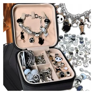 ZESTAW DO ROBIENIA BRANSOLETEK NASZYJNIKÓW CHARMS SZKATUŁKA KORALIKI DZIECI DUŻY ZESTAW DO ROBIENIA BRANSOLETEK I NASZYJNIKÓW CHARMS ➕ TORBA PREZENTOWA ➕ SZK...